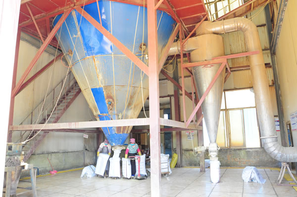 2. 將聚合硫酸鐵溶液加熱蒸發濃縮,濃縮溫度控制在90~ 150℃,濃縮致液體聚合硫酸鐵含鐵15%以上,40~100℃下干燥、粉碎制得淡黃色固體粉末狀聚合硫酸鐵; 或者將液體聚合硫酸鐵噴霧干燥得到淡黃色固體粉末狀聚合硫酸鐵。